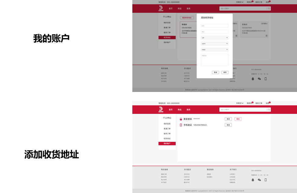 4、我的賬戶(hù)、添加收貨地址、消息中心、商品評(píng)價(jià)等