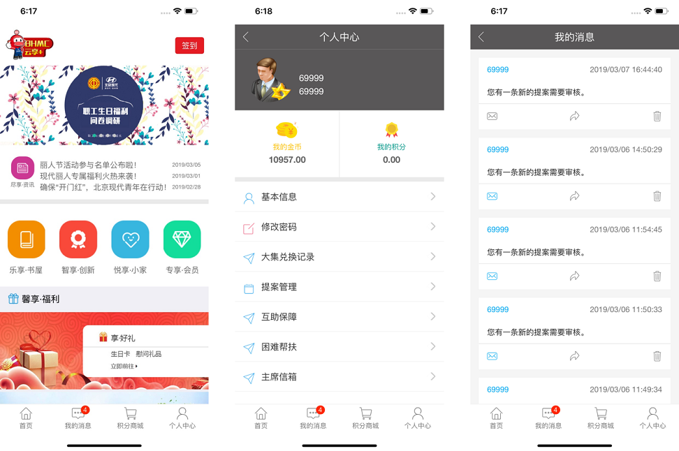 北京現(xiàn)代委托北京合合開發(fā)并內(nèi)部上線其內(nèi)部員工管理的APP,主要包括書屋、會員積分、積分商城、困難幫扶等員工管理功能。