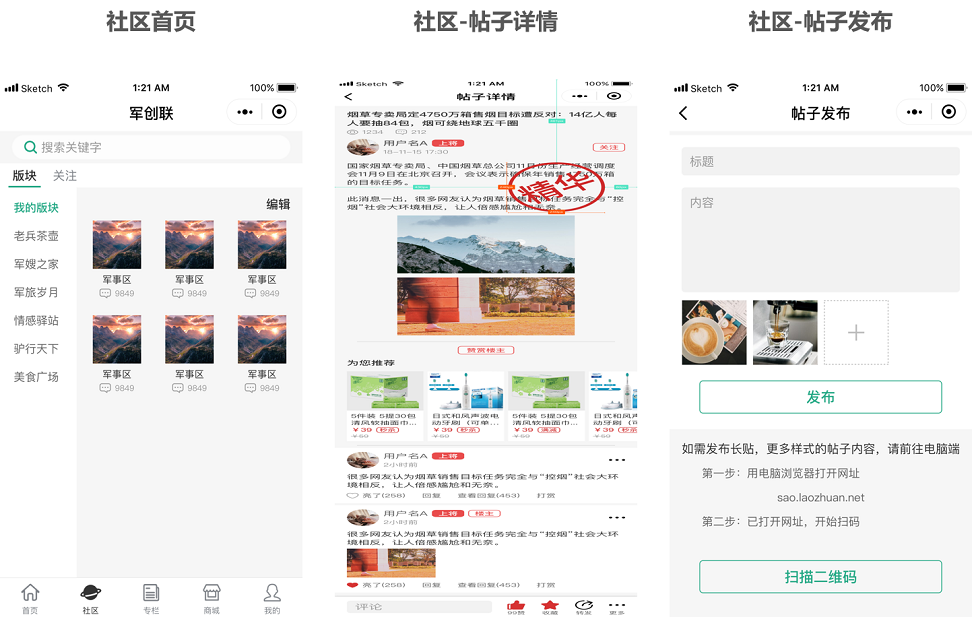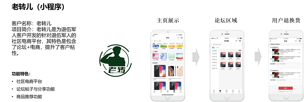 老轉兒是退伍軍人客戶開發(fā)的針對退伍軍人的社區(qū)電商平臺,其特色是包含論壇+電商,通過論壇帖子+分享+商品推薦的功能,提升用戶粘性,通過社區(qū)來做電商,緊緊把握社區(qū)電商發(fā)展的新時代的趨勢,聚焦退伍軍人這一專業(yè)細分群體。