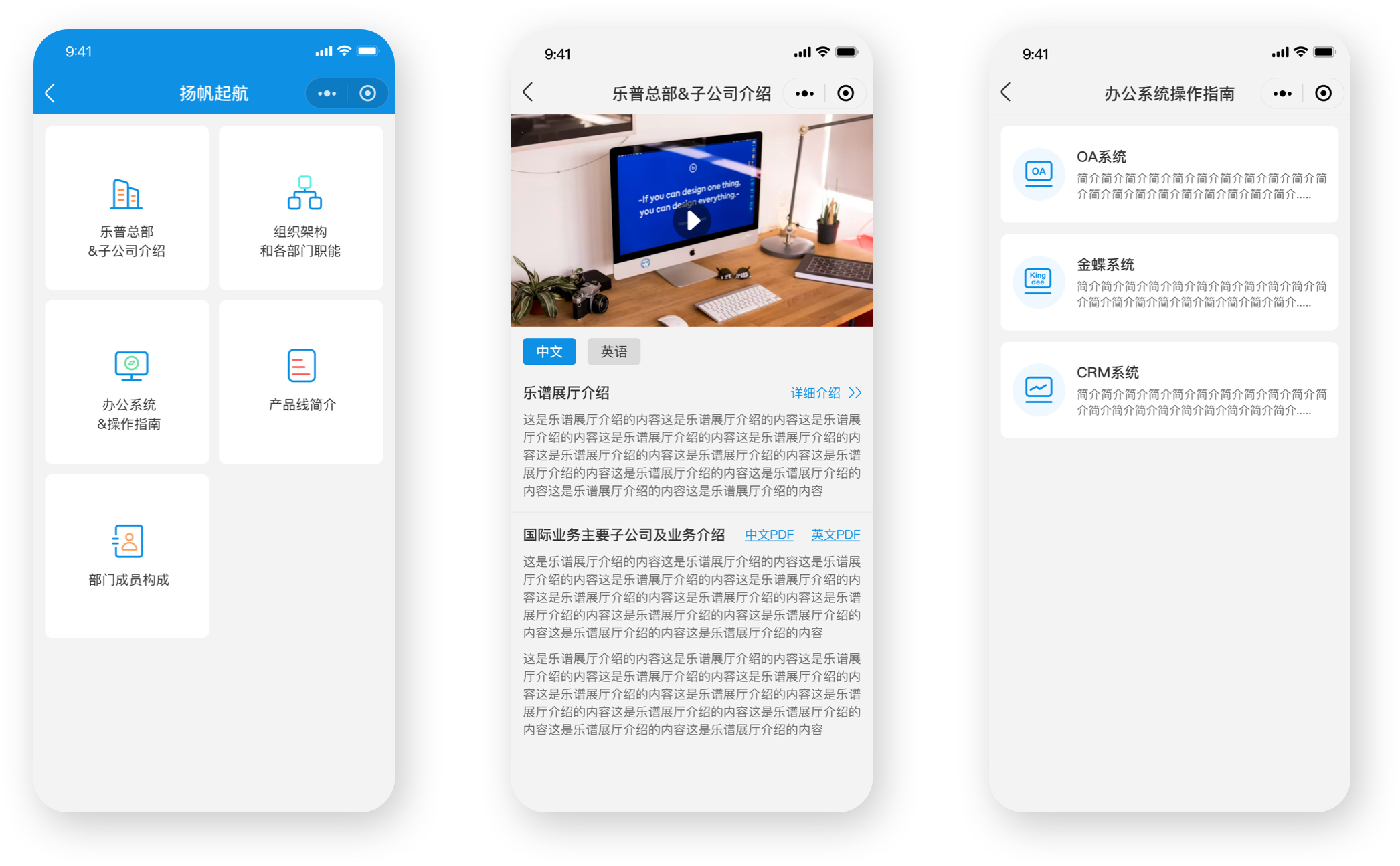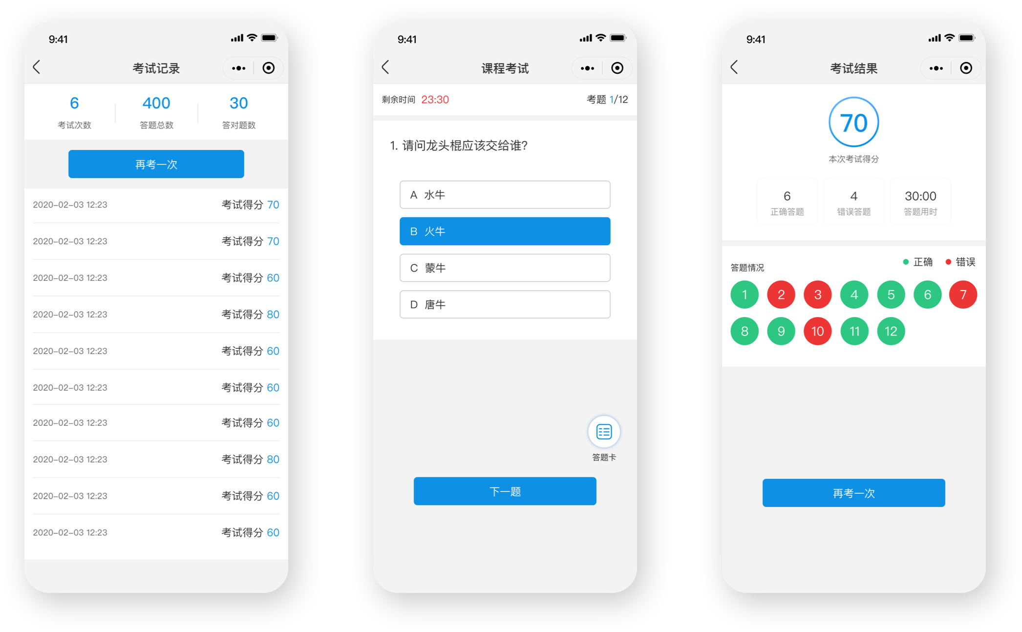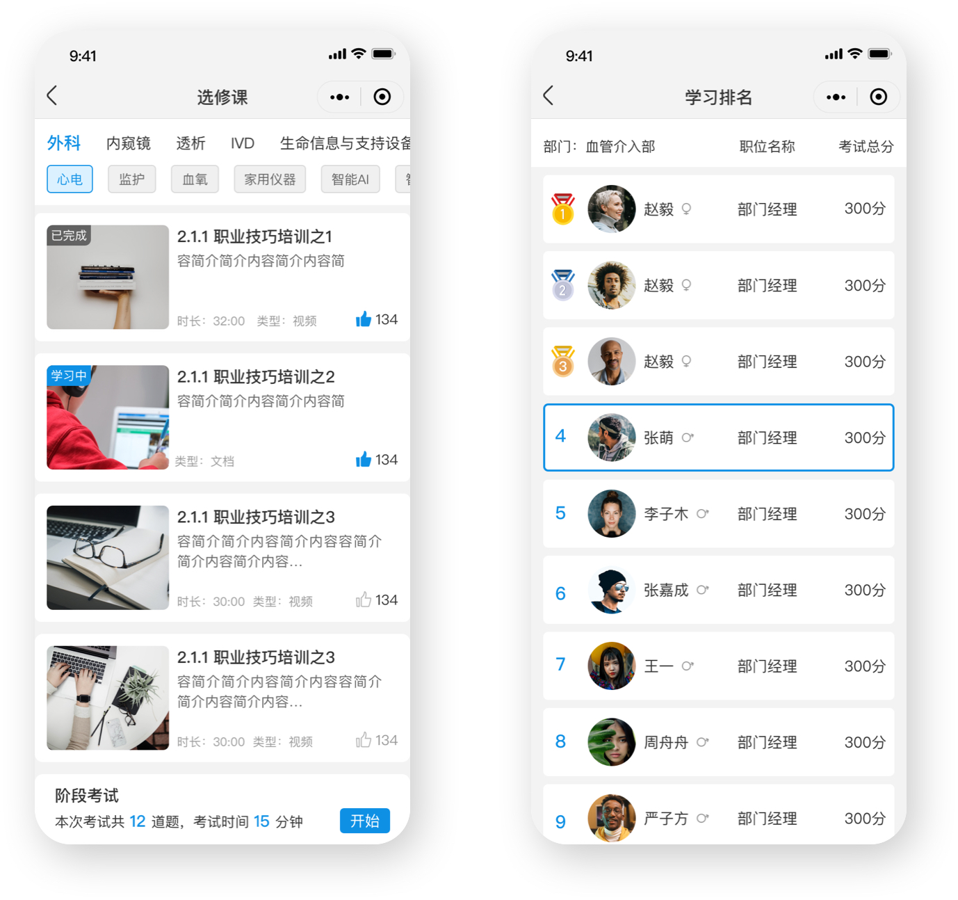 展示公司培訓(xùn)必修課文檔和視頻,進(jìn)行答題卡答題考試,排名排行榜等功能;