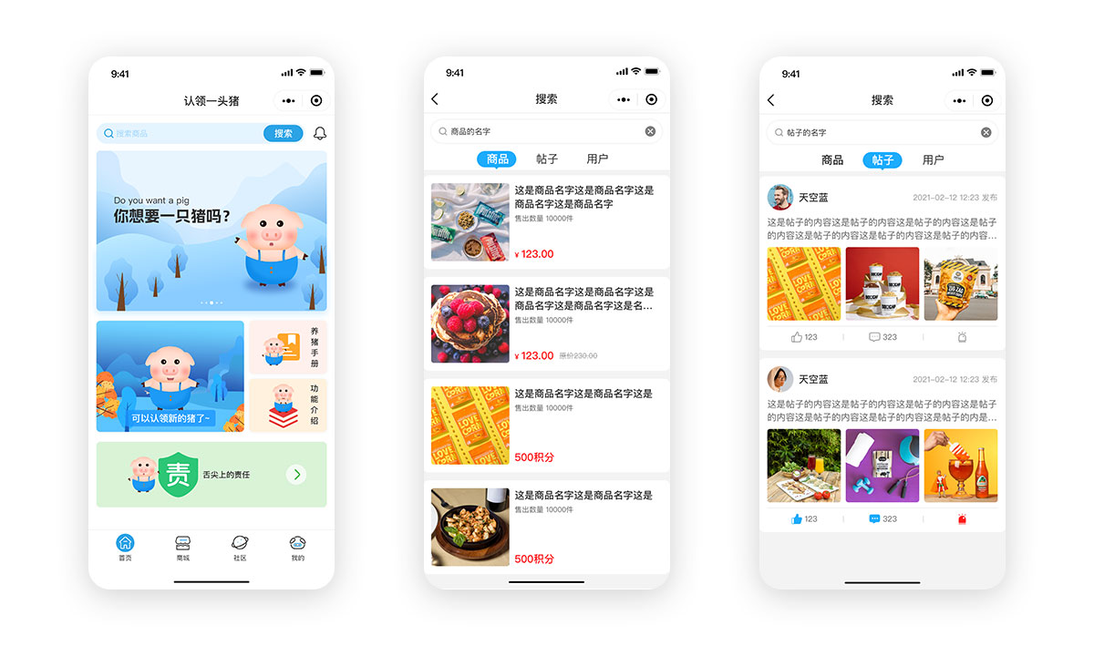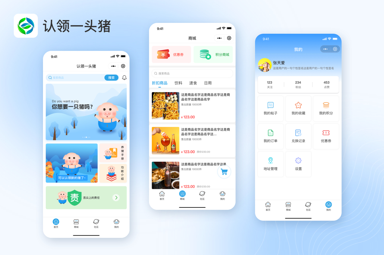 3、認(rèn)養(yǎng)一頭豬社區(qū)頁面UI展示