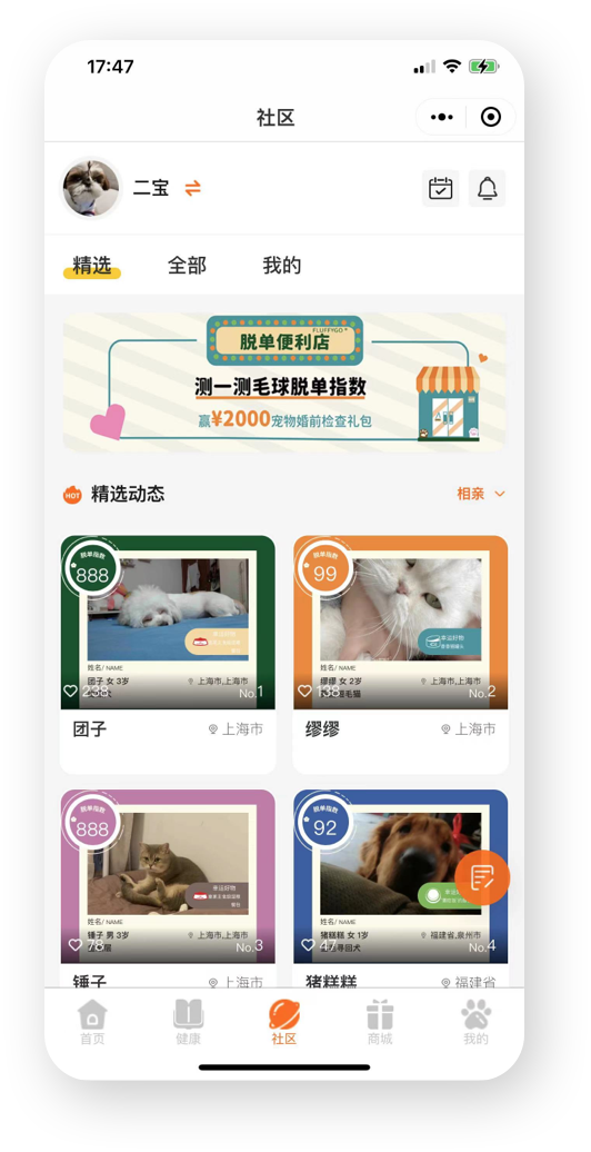 三、毛球總動(dòng)員社區(qū)頁(yè)面