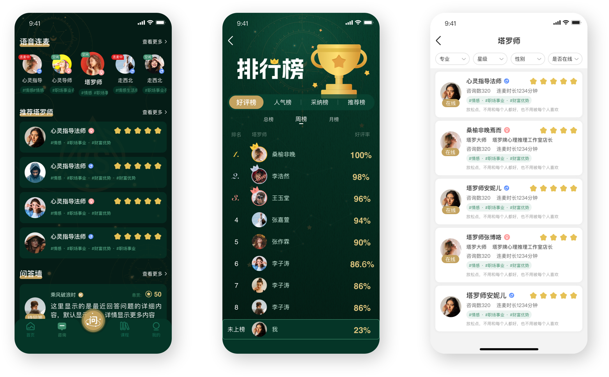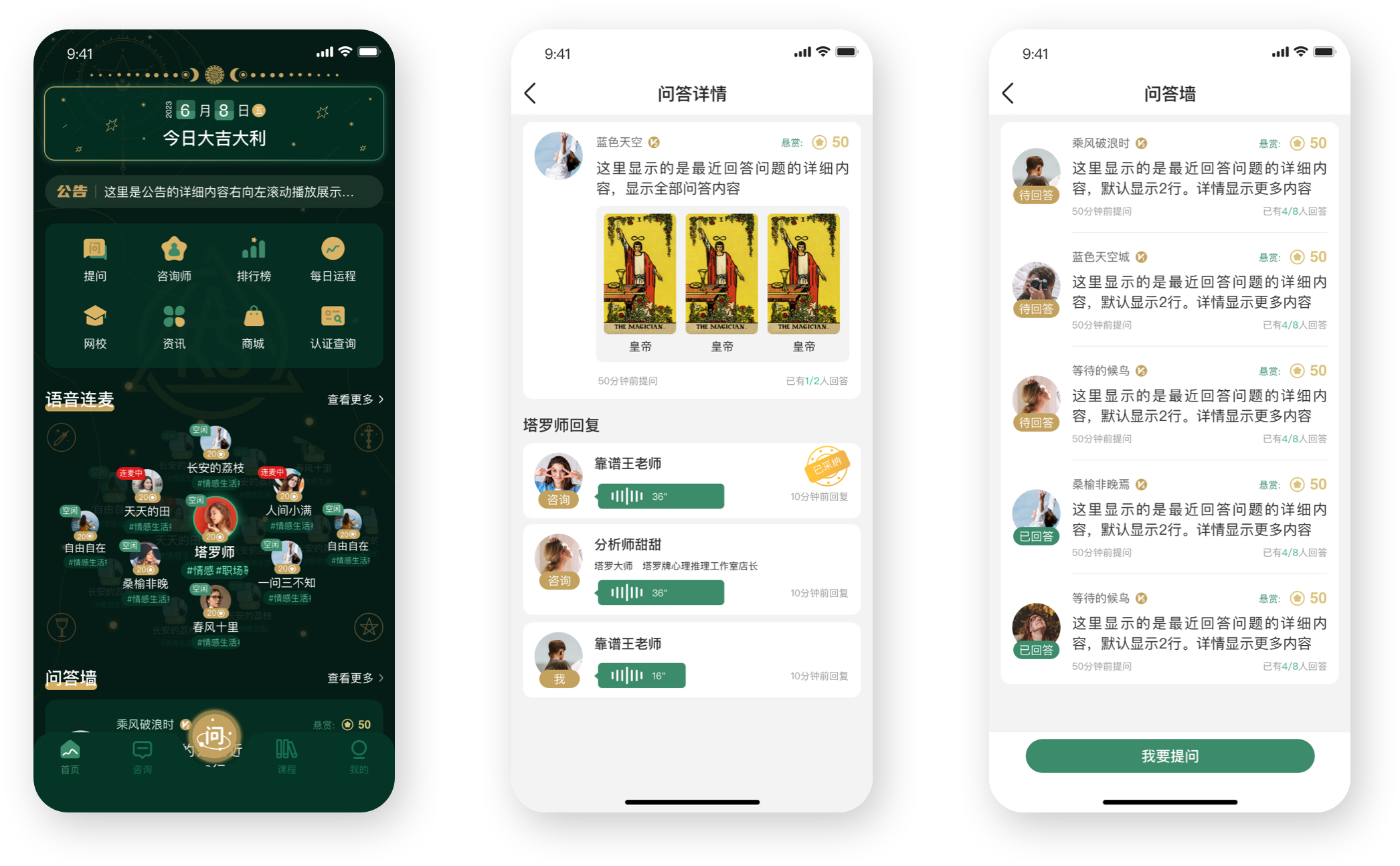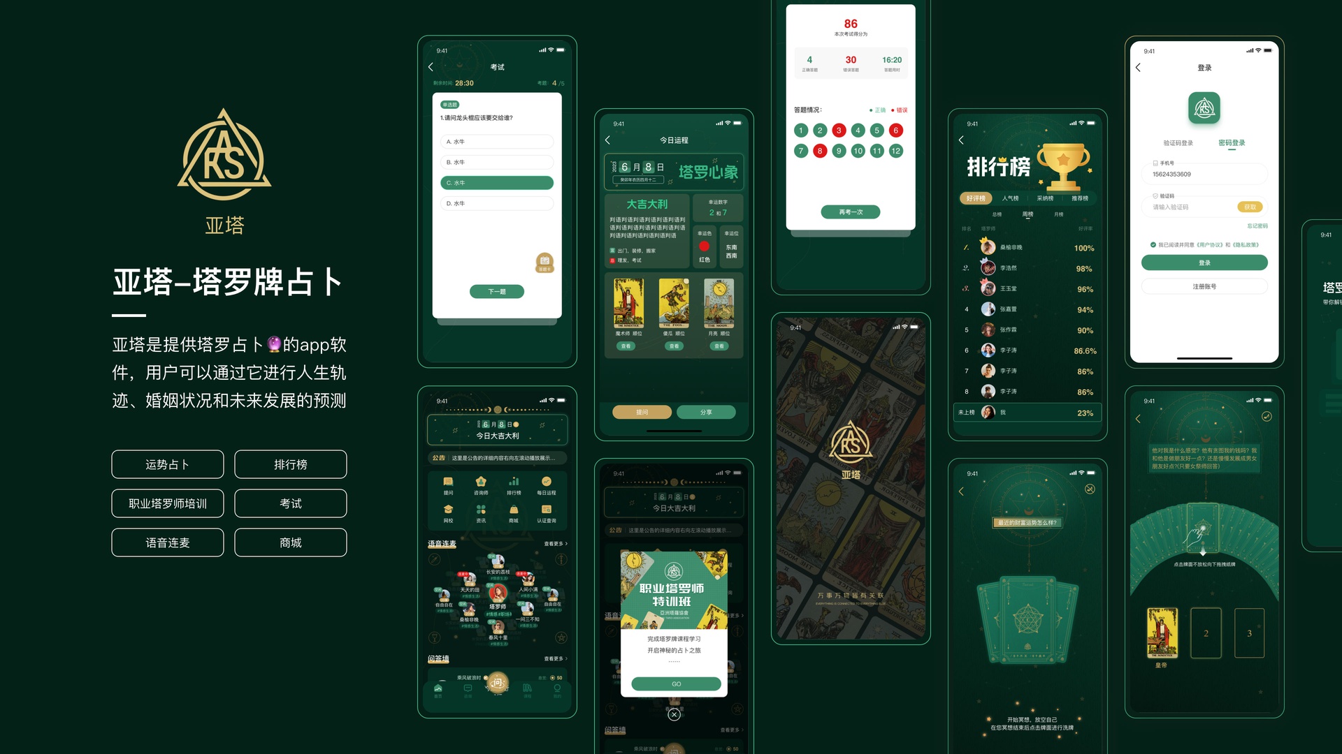 亞塔是提供塔羅占卜的app軟件,用戶可以通過(guò)它進(jìn)行人生軌跡、婚姻狀況和未來(lái)發(fā)展的預(yù)測(cè)占卜,主要功能包括運(yùn)勢(shì)占卜、職業(yè)塔羅師的培訓(xùn)、語(yǔ)音連麥、排行榜、塔羅師考試、商城等功能模塊。