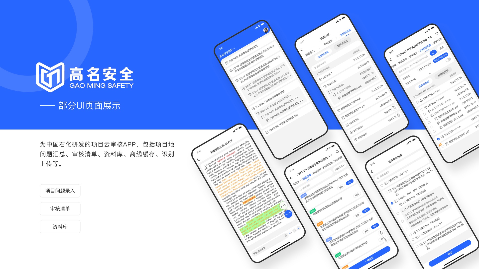 項目云審核APP是為中國石化研發(fā)的,主要功能包括項目的問題匯總、審核清單、資料庫、離線緩存、識別上傳等。