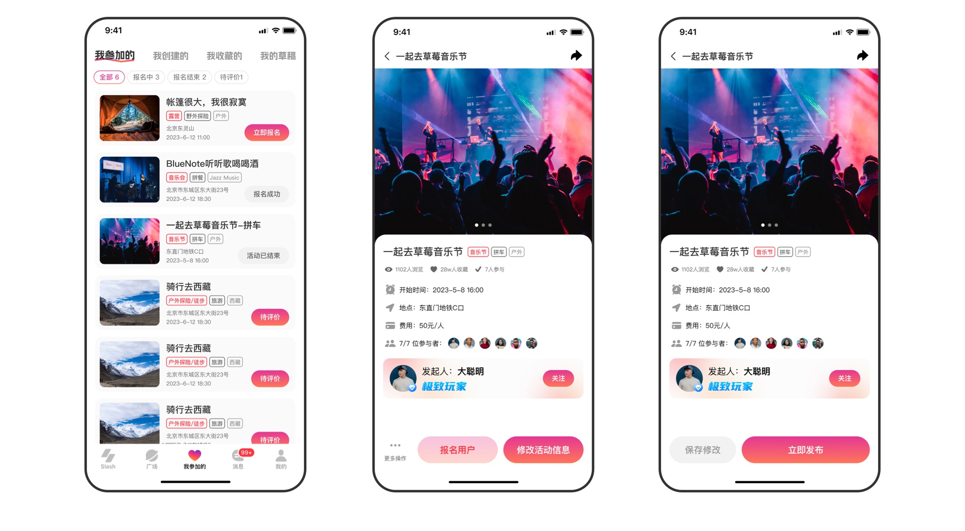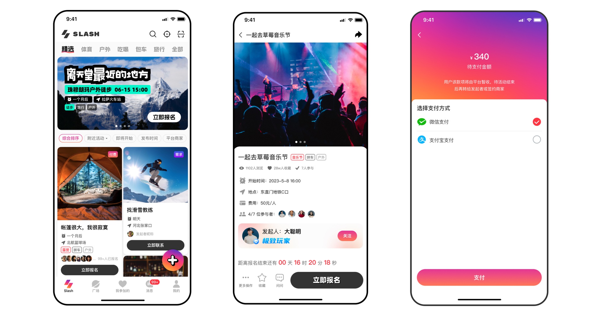 可以按照類別選擇豐富的線下活動,無論是您想找運動打球的搭子、學習伙伴、聊天約飯的朋友,還是想?yún)⑴c戶外徒步、露營、桌游派對等活動,Slash都能夠滿足您的需求,進入詳細活動內(nèi)容,可以進行活動的報名和支付。