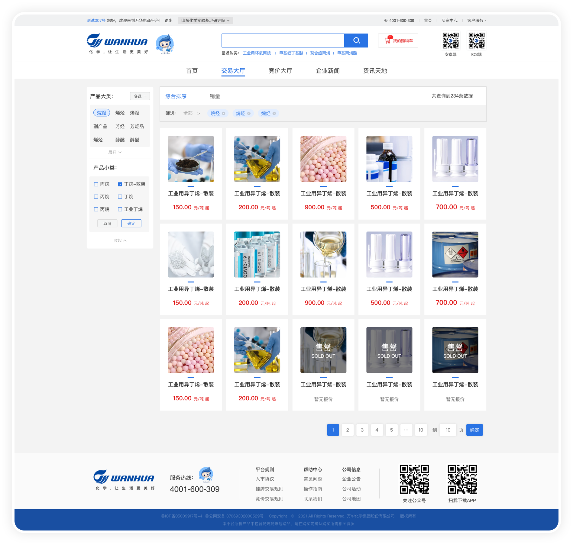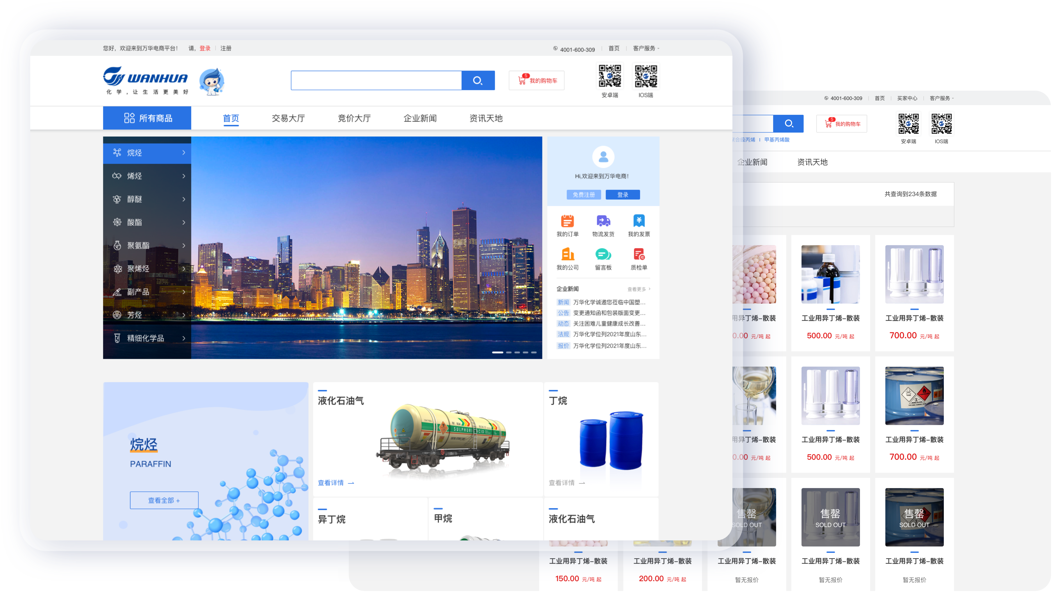 萬(wàn)華電商PC于2022年4月上線,是由北京合合科技為“全球化工50強(qiáng)”的萬(wàn)華化學(xué)研發(fā)的,主要是為了賦能萬(wàn)華化學(xué)化工材料銷(xiāo)售業(yè)務(wù)。本次開(kāi)發(fā)項(xiàng)目包括:萬(wàn)華電商平臺(tái)APP開(kāi)發(fā)、PC端開(kāi)發(fā)。