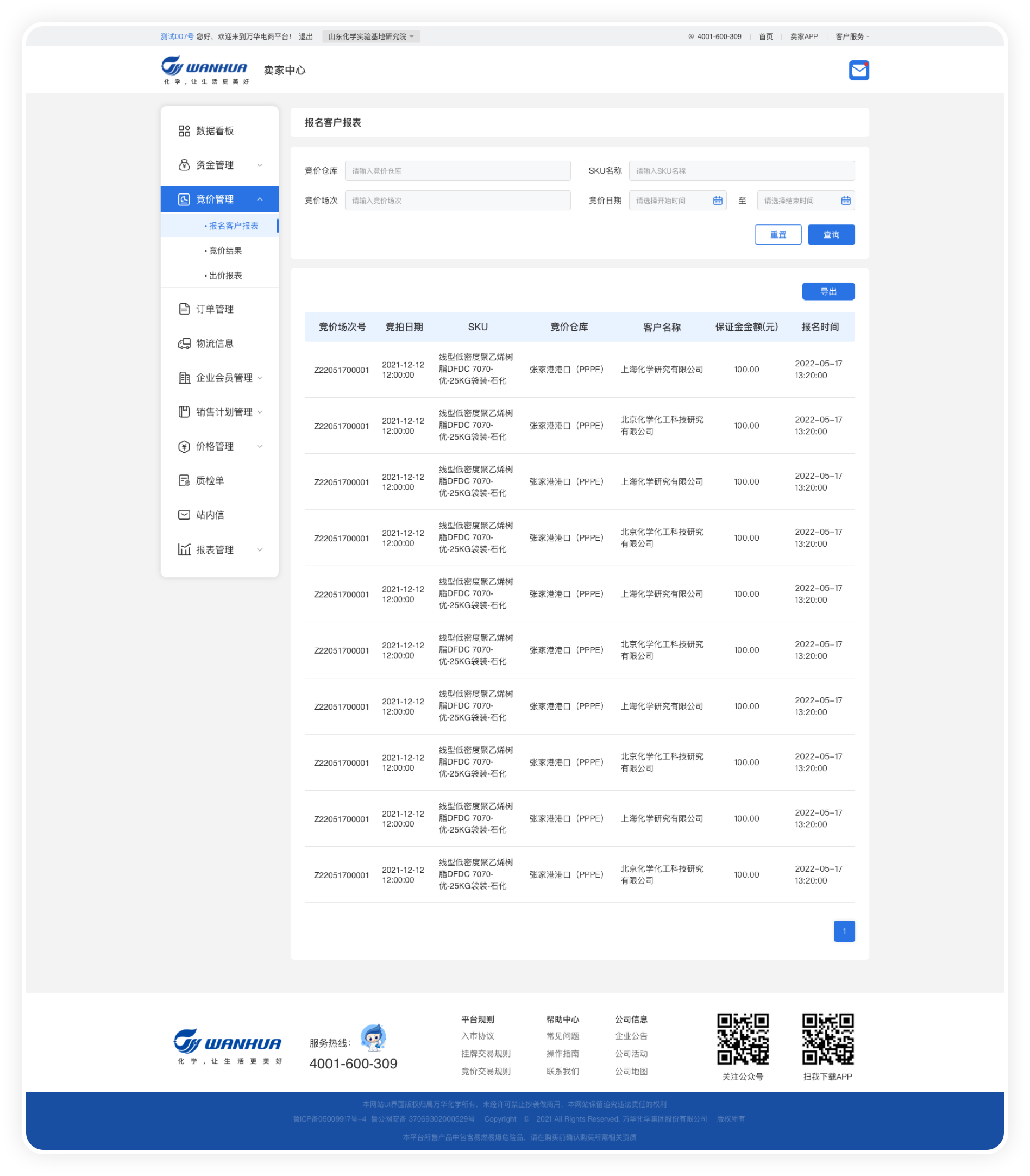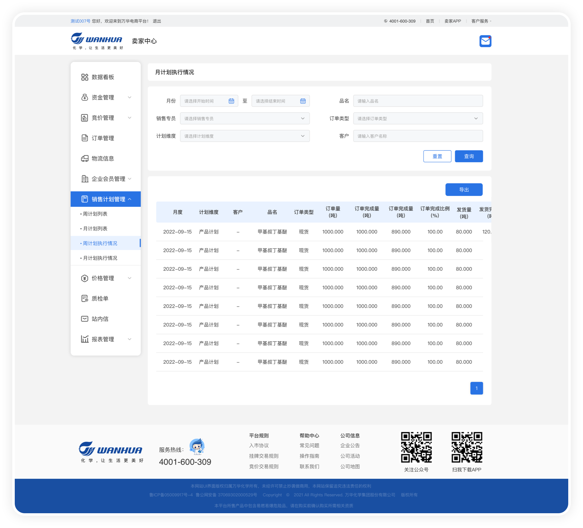 萬(wàn)華化學(xué)電商PC管理端的主要功能: