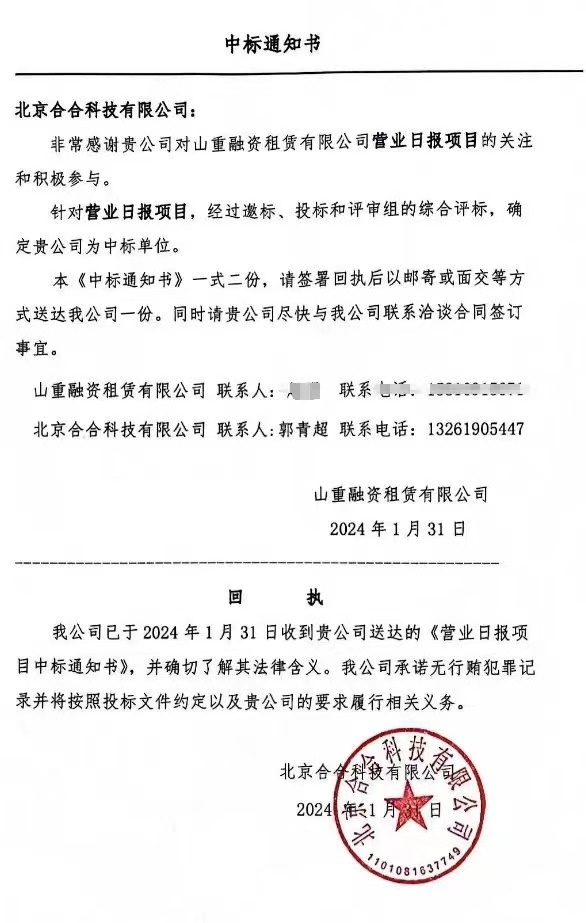 2024年2月,北京合合科技與山重租賃再度達(dá)成合作,承接開(kāi)發(fā)山重租賃APP營(yíng)業(yè)日?qǐng)?bào)項(xiàng)目的再次開(kāi)發(fā)工作。這是山重租賃對(duì)北京合合科技的公司實(shí)力、技術(shù)水平、案例經(jīng)驗(yàn)、開(kāi)發(fā)方案的再次認(rèn)可,也是老顧客對(duì)合合的再度信任,合合定不負(fù)所托,交付客戶滿意的產(chǎn)品。